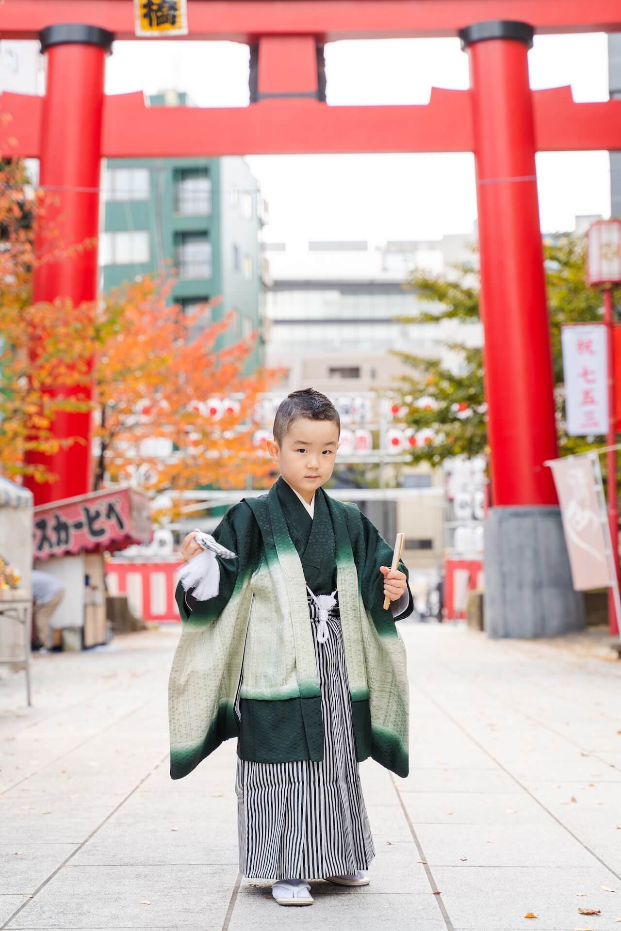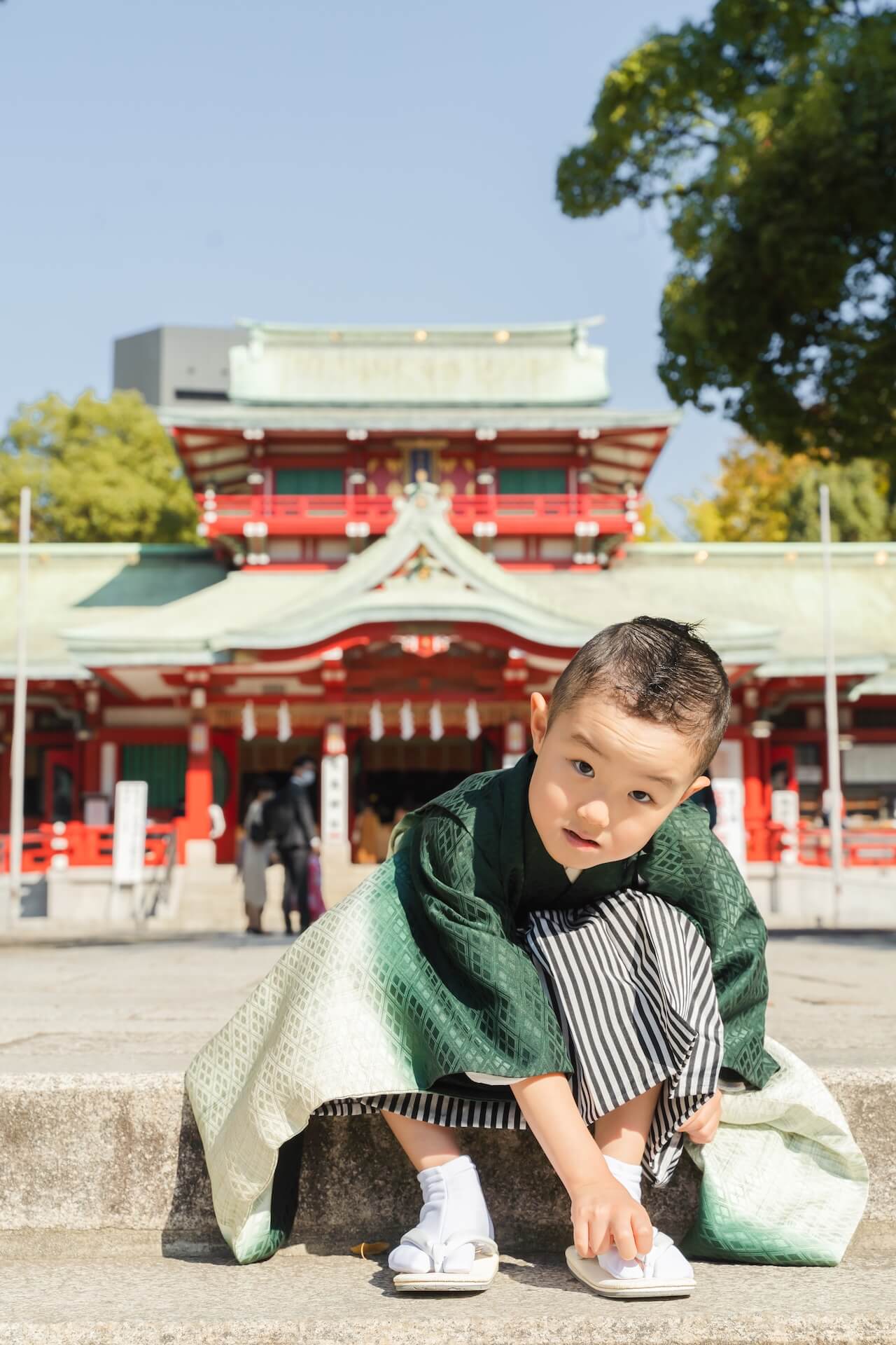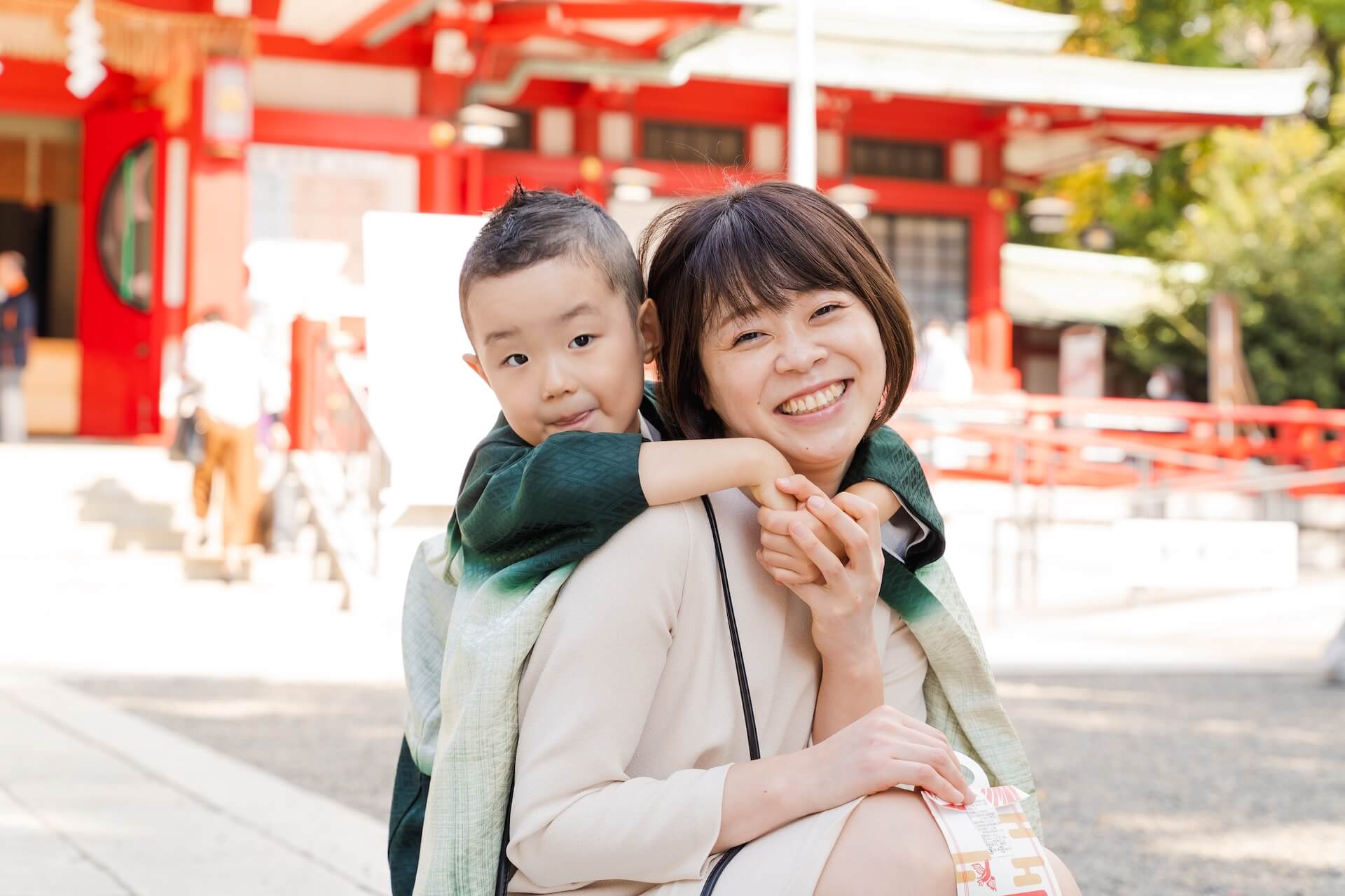 富岡八幡宮の赤い本殿や鳥居を画角に入れるだけで、ぐっと色彩が華やぎます。