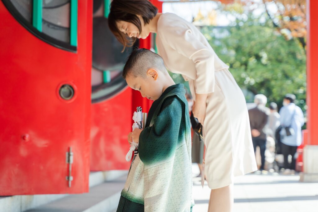 ワクワクいっぱいの息子くんと一緒にお参りへ。