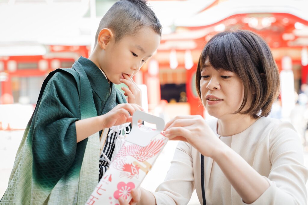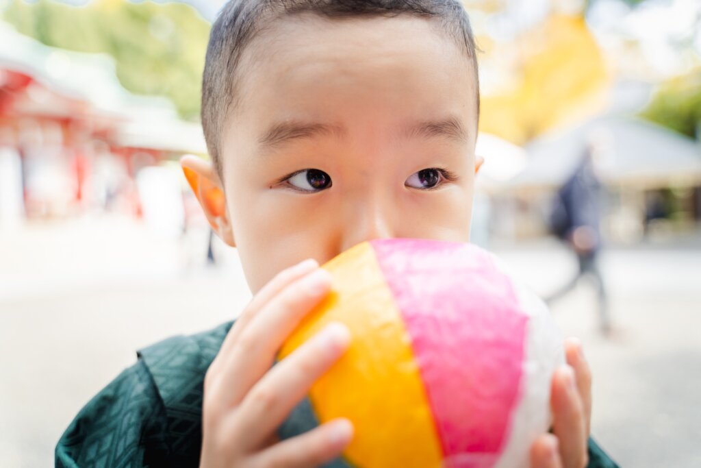 千歳飴を頬張る姿や、紙風船で遊んだり。